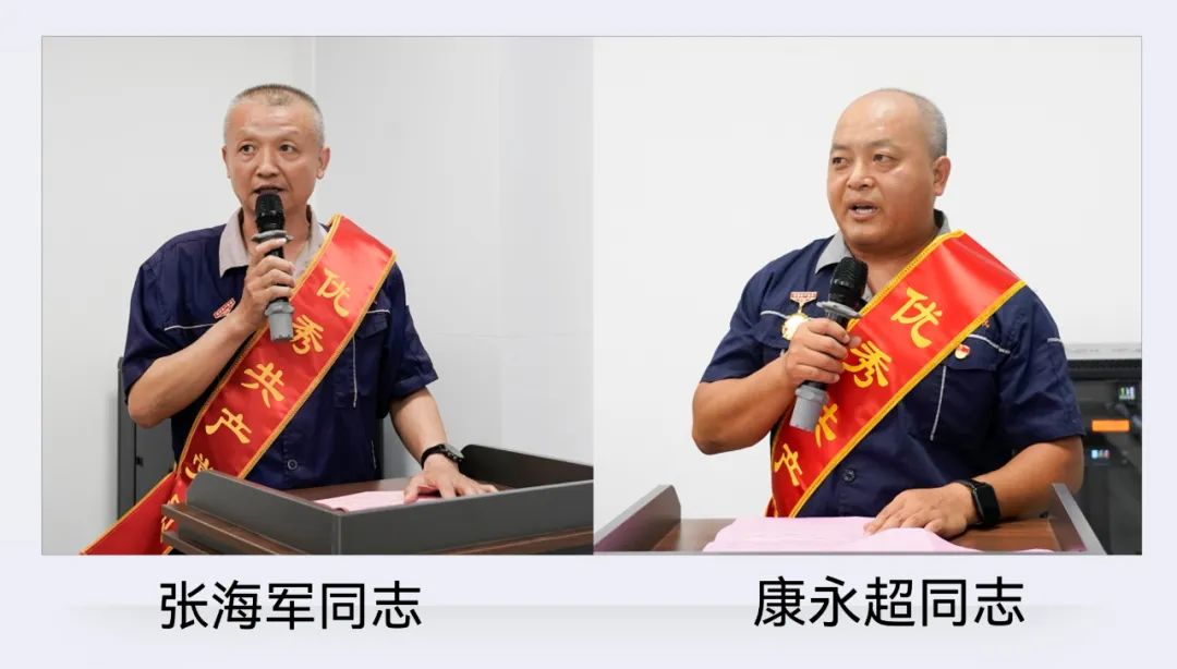 機工裝配車間黨支部書記張海軍同志作為先進基層黨組織代表作了表態發言;營銷中心黨支部康永超同志作為優秀黨員代表作了表態發言。